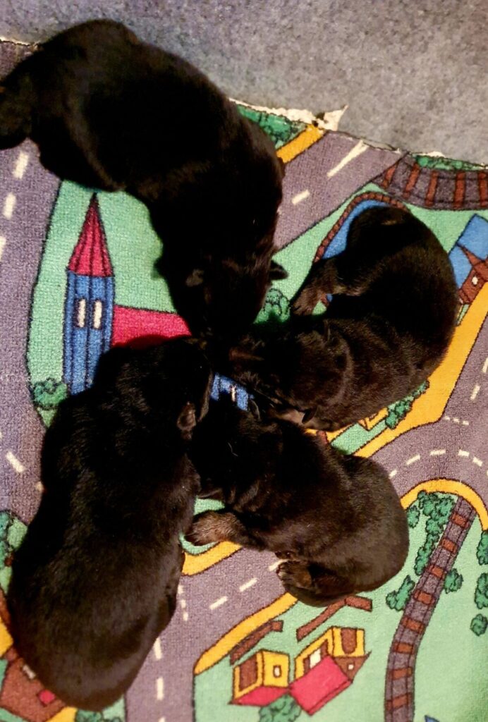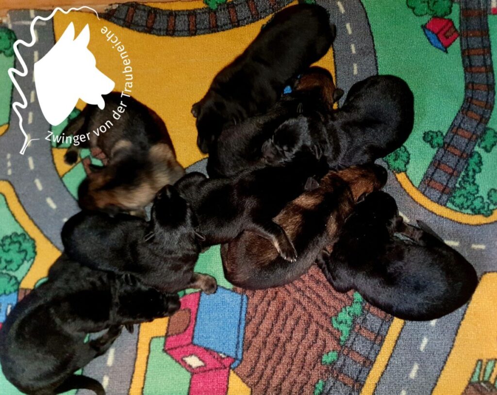 Am 11.10.2025 hat Orca dann problemlos 2 Rüden und 7 Hündinnen geboren. Alle sind wohlauf und entwickeln sich super.